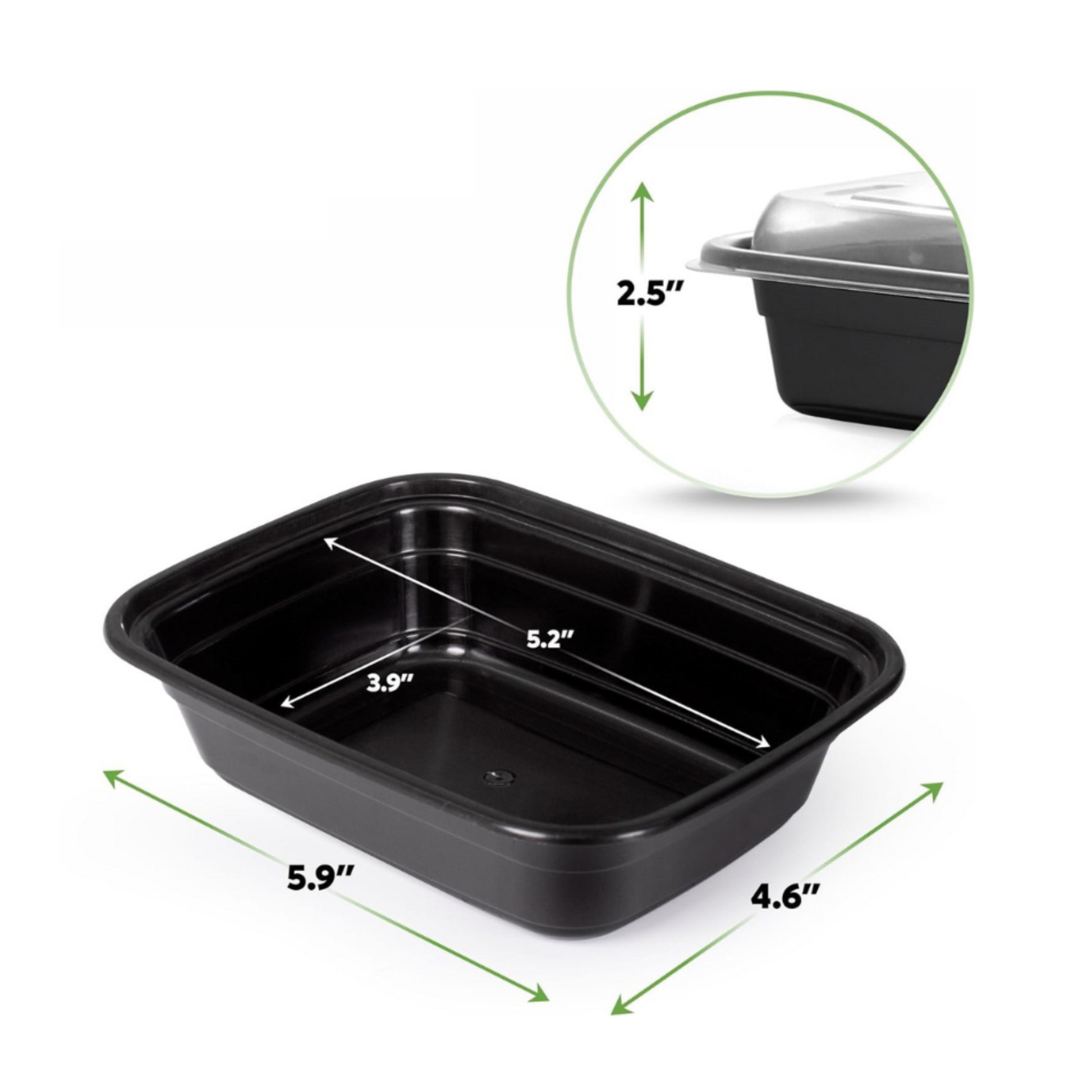 12oz Black Rectangular PP Container w/ Lid — Microwavable, 150/Case