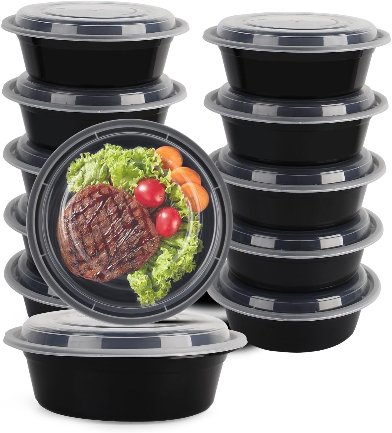 32 oz Black Round Microwavable Plastic Food Containers with Lids – Heavy-Duty, 150/Case