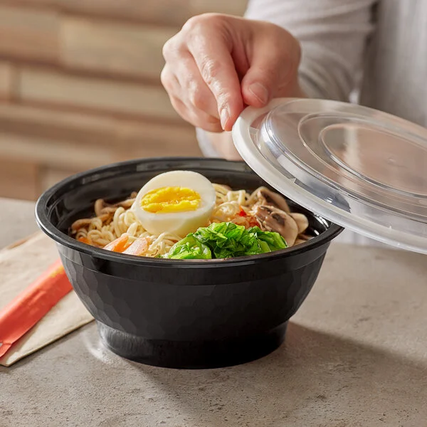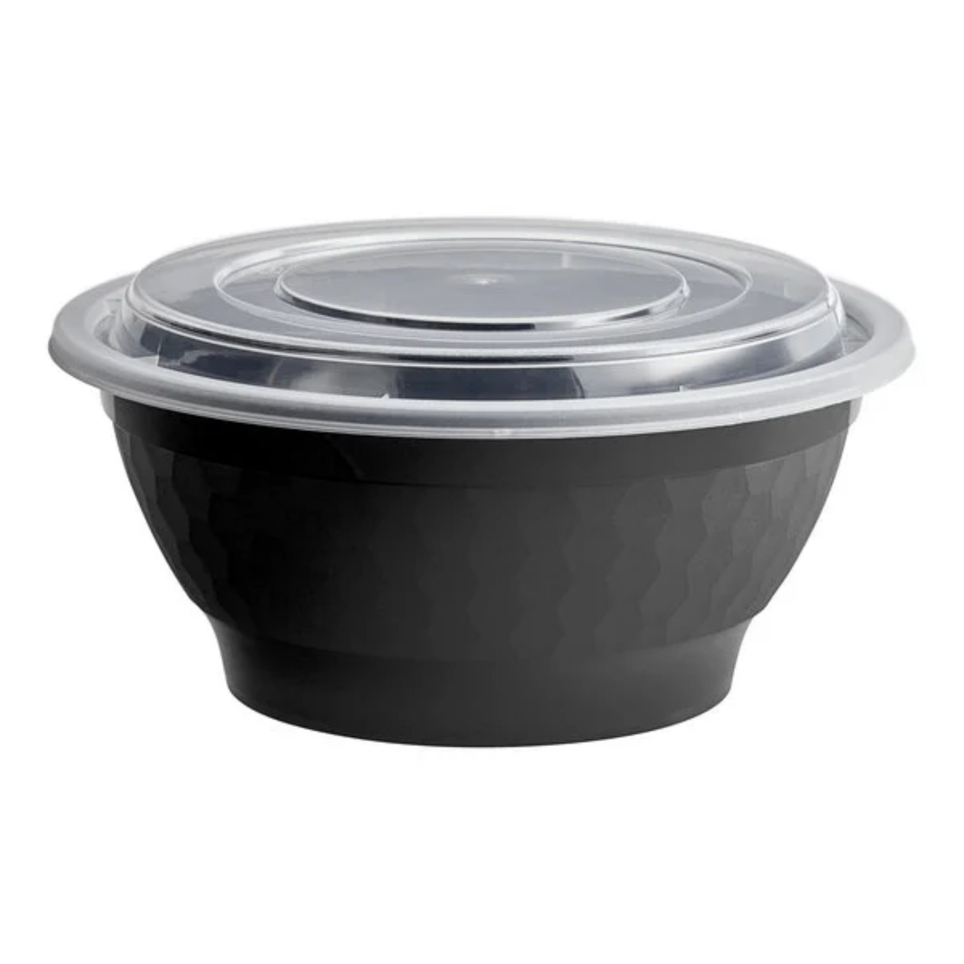 38 oz Black Round Microwavable Heavyweight Bowl w/ Lid — 150/Case