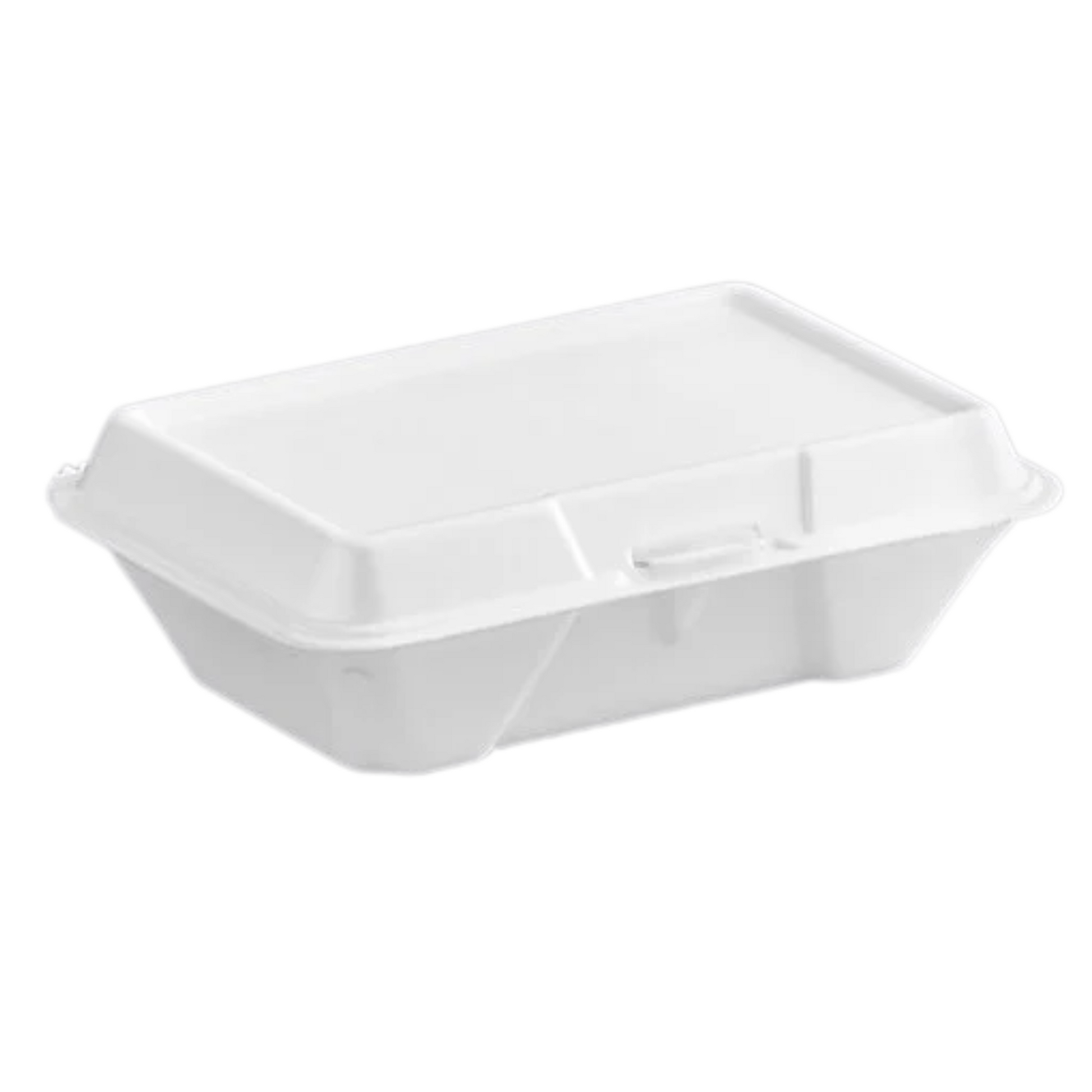 Our 9 ½" x 5 ½" x 2 ½" White Foam Hot Dog Containers are the perfect disposable packaging solution for serving hot dogs, sandwiches, and snacks. Made from lightweight foam, these containers provide reliable insulation to keep food warm while preventing leaks and messes. The hinged lid design offers a secure closure, making them ideal for restaurants, food trucks, and concession stands that require fast and efficient take-out service.