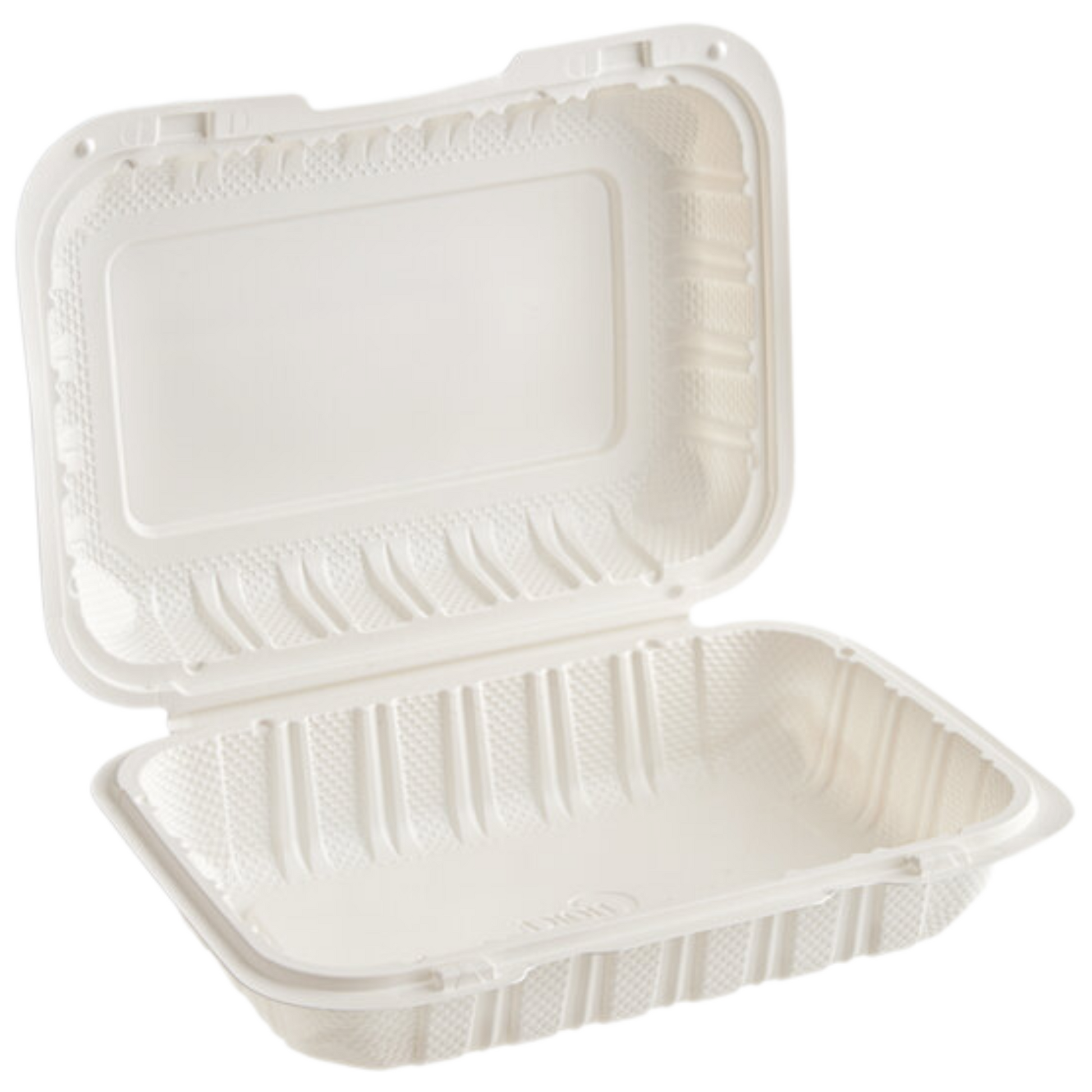 Our microwave-safe mineral-filled plastic hinged containers are durable, leak-resistant, and perfect for restaurants, food trucks, and catering services.